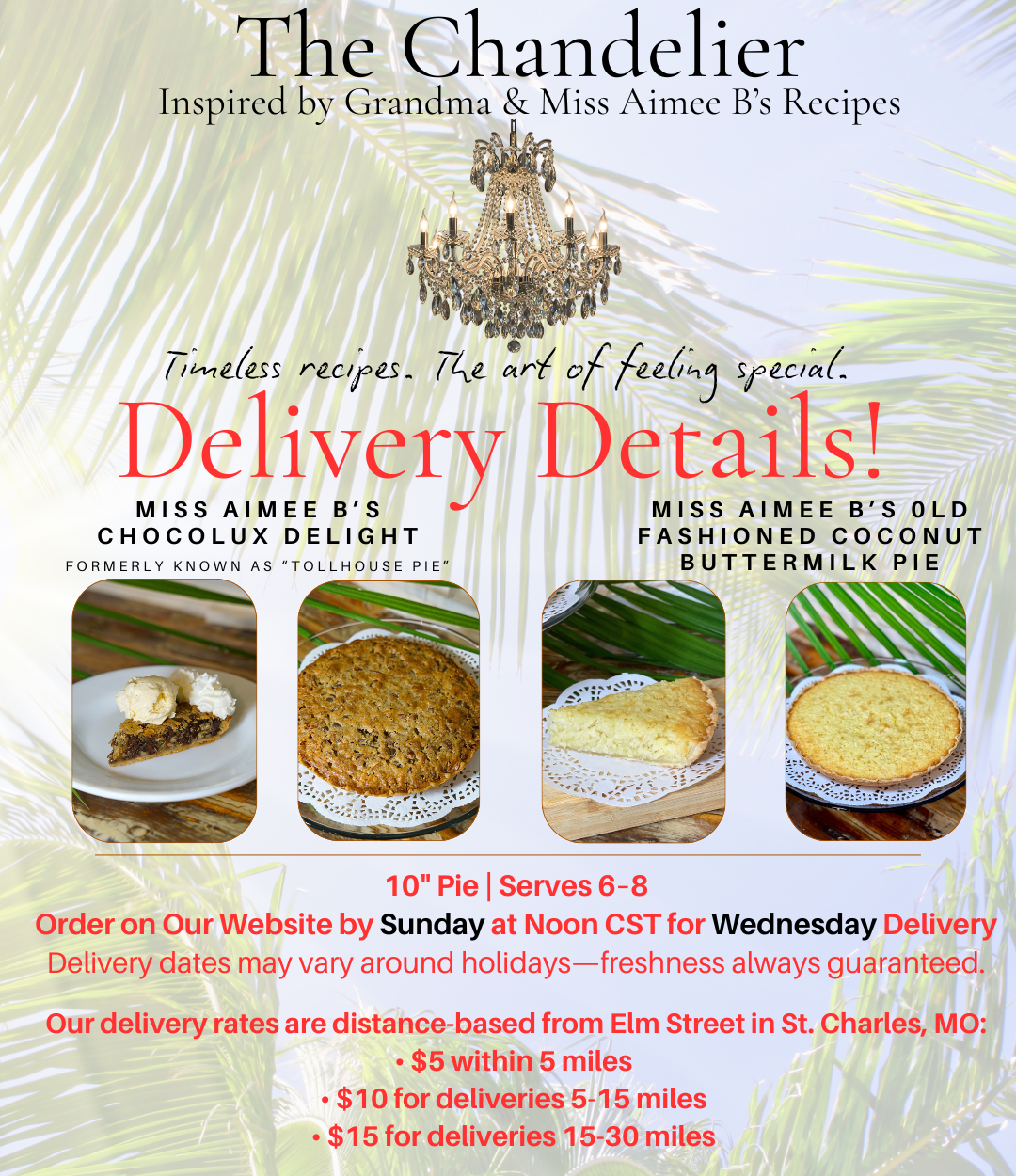 Loved by generations of guests, this crowd favorite from Miss Aimee B’s is now yours to savor — a slice of nostalgia and luxury from The Chandelier kitchen.