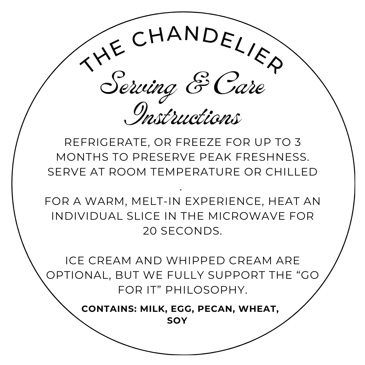 *Contains: Milk, Egg, Pecan, Wheat, Soy